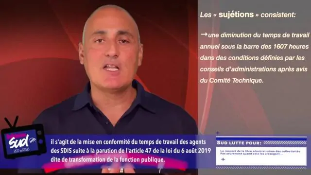 Il s'agit de la mise en conformité du temps de travail des agents des SDIS suite à la parution de l'article 47 de la loi du 6 août 2019 dite de transformation de la fonction publique.